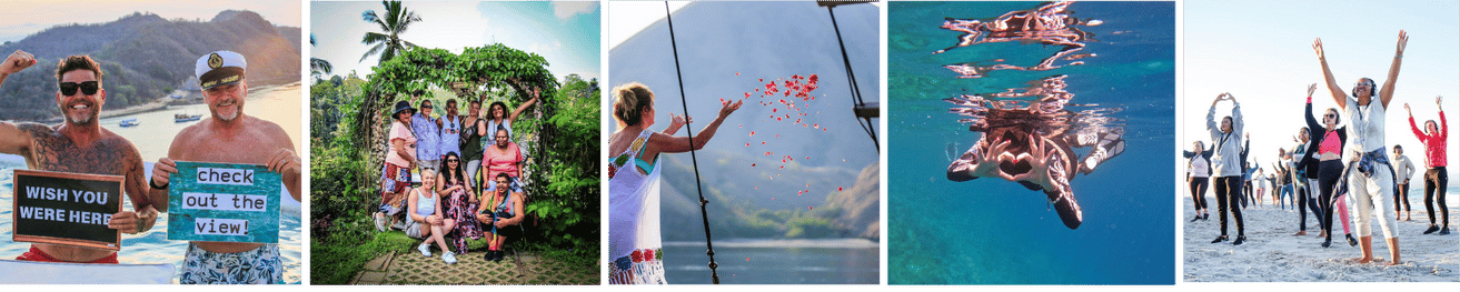 Retreats filled with adventure, fun, amazing food and life-changing teachings - together with other like-minded smiling souls - in breath-taking destinations like beautiful Bali, India, South Africa, and sailing on a house boat in the Indonesian Islands!